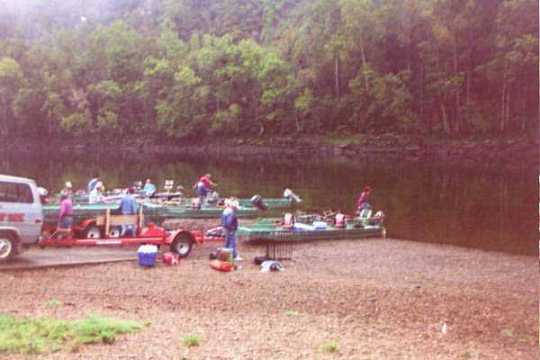 Putting the boats in the river at the White Hole Resort