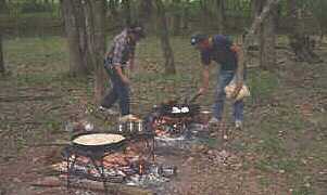 Pat is breaking up blobs of shortening. (They used to use lard.)
