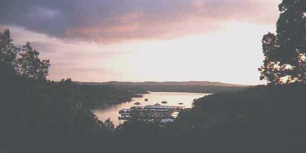 Sunset over Bull Shoals Lake Boat Dock