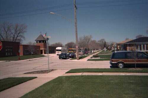 Both sides of the street used to be playing fields. The building on the left is a new school.