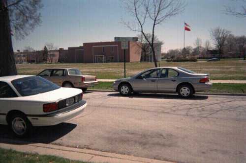 The former Niles East High School is now Oakton Community College, and that's a new building in place of the old Performing Arts wing. This view is looking South across Mulford Street.